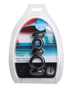 This double ringed cock enhancer helps maintain erections, prolong orgasm, and helps you get the most out of your performance! The stretch to fit design and thick rings make for a comfortable, effective fit on most any size! Just put one ring around your cock and the other around your balls- it is that easy! Now you can pound your partner until you both are satisfied, with the Dual Stretch-To-Fit Cock and Ball Ring!