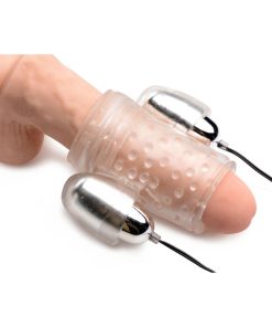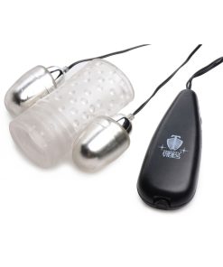 Enhance your shaft massage with powerful vibration and sensational texture! With super powered twin vibrating bullets and a super stretchy, open-ended sleeve, you can experience stroking stimulation on a whole new level! Just slip the tube onto your cock and control the level of thrumming thrills with the easy-to-use speed dial on the wired controller. Boasting a strong motor, these two bullets help surround your cock in toe-curling vibration. Inside the stroker are two textures: rapturous ribbing and blissful bumps that will further tease you towards orgasm. Use it on your own or with a partner to find out what all the buzz is about!