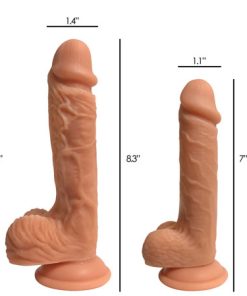 Insert the bulbous head past the bold coronal ridge, take on the veiny shaft, and bounce up and down on those balls! This lifelike dildo is made with ultra-premium silicone to give you a lasting pleasure tool that you can trust. The defined head and bulging veins combined with the dual-density material make this dong look and feel like the real thing… or maybe even better! The strong suction cup base sticks to just about any flat surface so that you can it for a ride. You can even warm it up or cool it down for a variety of sensations. The hypoallergenic material is easy to clean with mild soap or a toy cleaner, but it is also top-rack dishwasher safe. Use with only water-based lubricants.