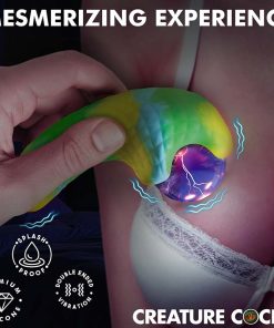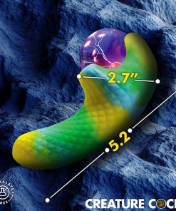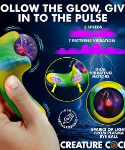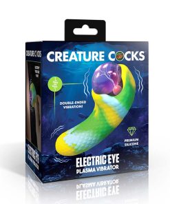 Transform your self-pleasure experience with the Electric Eye Plasma Vibrator, a fantastical creature adorned with scaly green-blue-yellow textures. The unique touch-activated plasma eye glows with pink electric sparks, lighting up your personal moments. Feel the power of its dual motors with 3 speeds and 7 patterns of vibrations at both ends. Made from high-quality textured silicone, this vibrator enhances every touch. Conveniently rechargeable via USB, it’s also IPX5 splashproof, ensuring durability through water splashes. Immerse yourself in the magical allure of this one-of-a-kind device.