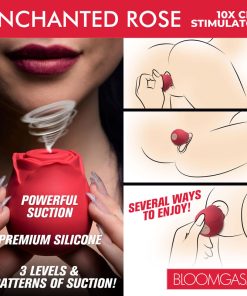 This Bloomgasm Enchanted Rose is ready for you to enjoy as you wait for your long, lost love. Simply take the rose out of its clear, enchanted case and turn it on to enjoy 3 levels and 7 patterns of clit sucking magic! Enchant yourself for an evening with this silky smooth, beautifully designed, premium silicone rose. Made phthalate-free and body safe, it will soon become a long-term favorite. Use with water based lube only to ensure a long shelf-life.