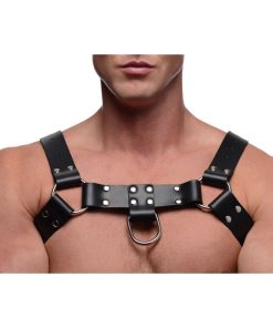 This fetish wear duo combines an enticing chest harness with a naughty cock strap, both made of leather and shiny metal for a luxurious and striking look and feel! Wrap up yourself or your partner to enhance the atmosphere during BDSM play, with the added benefit of a cock ring that encircles the entire package for enhanced sensation. Featuring multiple points of adjustment around the shoulders and up the back, both accessories are built to fit a variety of body types. An additional strap is included for even more customization.