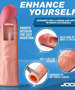 Transform your intimate moments with the Realistic Penis Extension! Designed with an incredibly realistic appearance, the extension showcases a pink-tinted mushroom head and a thick, veiny shaft. Instantly enhance your size by 1.5 inches in length and 0.6 inches in girth for ultimate pleasure. The interior texture intensifies the experience for both you and your partner. Constructed from body-safe, latex-free silicone, it’s perfect for use with water-based and oil-based lubricants. Need a custom length? Simply trim the base to suit your needs.
