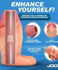 Introducing the Penis Enhancer with Ball Strap! This extra-wide and short sleeve is designed to deliver an intense stretch to your partner’s vulva or anus. Realistic veins and an anatomically accurate shape add authenticity, while the smooth interior guarantees a comfortable fit. The included ball strap keeps the enhancer securely in place, allowing you to focus on pleasure. The open-tip design grants your shaft more freedom and makes fluid release easy. Made from top-grade, body-safe silicone, it’s best used with water-based or oil-based lubricants for maximum enjoyment.