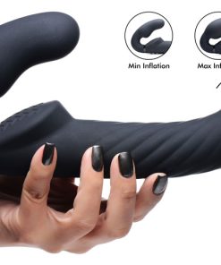 The Ergo-Fit technology found on this strapless strap-on helps you find the perfect fit for your body! Inflate the vaginal bulb to fill your hole and support this shaft for your thrusts. Users of all shapes, sizes, and experience levels will love the customizable fill – simply hold the inflation button found on the dildo shaft and remote control to find the amount of fill you need to comfortably support this swirly shaft!