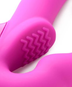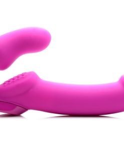 Ensure the satisfaction of both you and your lover with an elegant strapless strap-on that vibrates! This rechargeable pleasure tool features dual motors with independent control so that you can each take your pick of the 3 speeds and 5 functions of powerful internal thrumming. Both ends of this artfully designed double dildo are shaped for the ultimate in ecstasy: the bulb curves towards your G-spot to pinpoint pressure while you grind your clit against bold grooves. Meanwhile your partner will be treated to a smooth shaft with a protruding mushroom tip. It is even waterproof so that you can take your play into the shower, bath, pool, and more! Explore greater intimacy with a vibrating double-ended strapon dildo. Made of silky silicone, the Evoke is non-porous and phthalate-free. Clean with mild soap and warm water and avoid use with silicone lubricants.