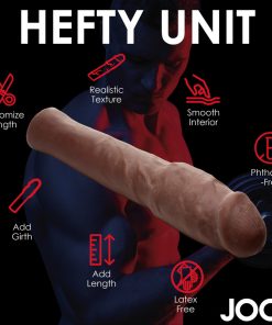 Satisfy your partner’s craving for a larger rod with this extra thick 2 inch penis extension sleeve by JOCK! With a smooth interior you can easily slip your shaft inside the sleeve and still enjoy the warmth and squeeze from your partner once you penetrate them with your newly enlarged shaft! Gain an extra 2 inches in length and 1 inch in girth in an instant! The outside of the sheath is textured for a realistic feel and the extra thick tip will help to stimulate and massage their G-spot or P-spot. Wash with warm water and mild soap after each use.