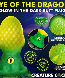Fantasy Anal Toy: This thick, egg-shaped plug has a stimulating, dragon-scales texture and a wide, base with a glass dragon’s eye on it.