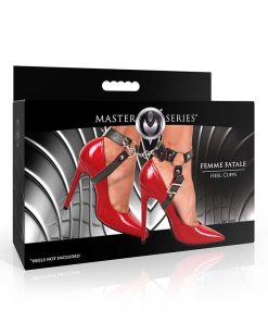 Embrace your daring side with the Femme Fatale Heel Cuffs, perfect for women who love to mix style with a touch of the unconventional. These fashionable ankle cuffs are made from vegan leather, offering a guilt-free edge to your ensemble. Featuring adjustable straps and secure lockable buckles, these cuffs stay put while you flaunt your style. The removable cuff connector limits steps until removed, adding a playful restriction to their movements. Designed to fit most heel sizes, these cuffs are the ideal blend of comfort and daring for the bold fashionista.