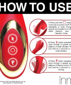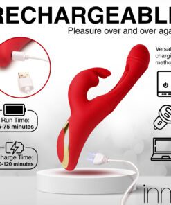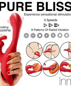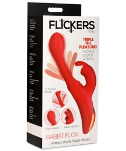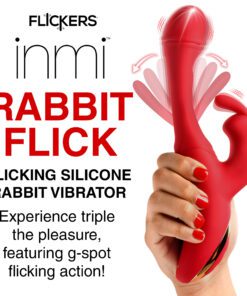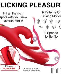 Go out of your mind with pleasure! This new Flicking Silicone Rabbit Vibrator brings you intense sensations for those who want to release their tension until they are gushing and wet! The smooth, silicone shaft is made out of premium quality silicone and is body-safe and phthalate-free. As you insert the round, G-spot targeting head you’ll feel powerful vibrations through the shaft. And as you get the rest of the shaft inside, you’ll have the added stimulation from the flicking arm in the shaft itself! It beats against your G-spot as the head gets deeper towards your cervix for a cervical and G-spot release. At the same time, you can enjoy the rabbit arms flicking against your sensitive pearl. Choose between 3 speeds and 8 patterns of flicking on your clit while you have 3 speeds and 9 patterns of flicking and vibration in the shaft. This powerful and sensual toy is completely rechargeable via the USB cable provided. To clean, use warm water and mild soap then rinse and spray with a toy cleaner.