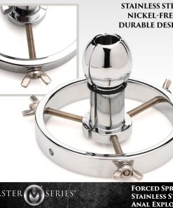 Train your booty to take larger and wider penetration with this Stainless Steel Anal Explorer! This expanding toy has a plug that dilates from 1.6 inches to 3.8 inches in diameter! Enjoy how the cold, hard steel feels inside you or warm it up with a little hot water and introduce temperature play. The smooth stainless steel is nickel-free, body-safe and easy to clean. Use with any lubricant type and stretch open that hole! The tapered tip of the plug makes insertion easy. Once inside, turn the screws to start to stretch the backdoor entry as the plug separates in three separate parts. Take your time so you don’t tear anything! This is for extreme anal lovers but anyone can enjoy the pleasures of widening their backdoor! It’s perfect for training for fisting, too! The center ring is big enough for most fists to reach through, so you can stretch open the hole in preparation and then slowly bring a hand inside! Comes with 6 silicone o-rings that wrap around the plug as it pulls apart. To clean, use an isopropyl alcohol and water solution, boil in hot water after use, or use warm water and mild soap then spray with a toy cleaner.