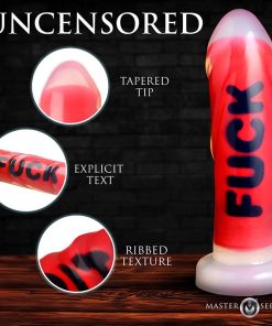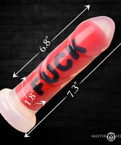 Introducing the must-have addition to your toy collection: the Premium Silicone FUCK Dildo. Made from top-quality, body-safe silicone, this hefty dildo boasts an impressive girth of almost 2 inches and a length of nearly 7 inches. Its ribbed shaft is perfect for added pleasure and intense sensations. Compatible with most strap-on harnesses, this dildo also includes a durable suction cup base for versatile, hands-free play. Take your kinky fantasies to the next level with the word FUCK featured prominently on the side!