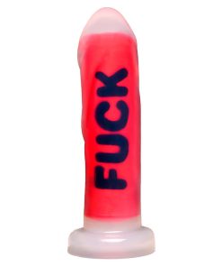 You’ve been craving a big, naughty rod all day. As your partner straps it into place, in bold, black letters against red is the word FUCK. You rub the lube on the shaft and lick your lips in excitement. You know what comes next, and you spread your legs in anticipation! But even though you crave it, you still moan out loud in surprise as you get stretched open by this big, bad, dildo!