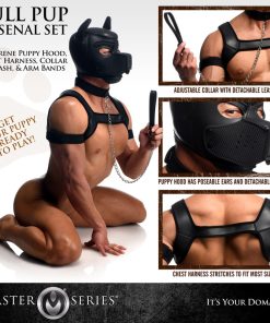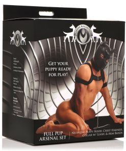 When playing as a puppy, the right gear goes a long way! Get everything you need to get started in one kit and live out your fantasy! Included in the kit is a puppy hood, collar and leash, arm bands and a chest harness. Made out of durable neoprene, this gear is vegan-friendly, easy to clean if you start wrestling and playing in the mud or getting dirty, and comfortable to wear! The puppy hood has poseable ears and a removable muzzle. Point your ears in different ways to show off your mood or personality. Remove your muzzle to use your human mouth when you want to or need to. The armbands and collar are adjustable for a custom fit. The chest harness fits most bodies. Spot clean as needed. Store out of direct sunlight.