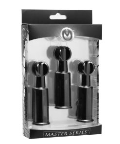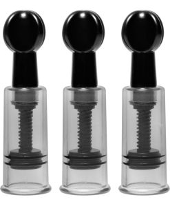 Enjoy powerful suction with this triple set of deviously sized suction cylinders. Simply apply to any area that would benefit from increased sensitivity and blood flow, no pumps or accessories needed. These self-contained suction devices work with a simple twist for a powerful grip. Lubed internally for smooth movement and a strong seal that makes for a memorable sucking session.