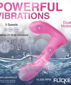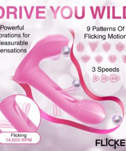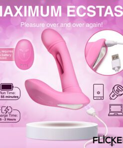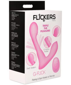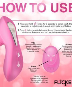 Prepare to reach new heights of ecstasy with this G-Flick G-spot Vibrator! The shaft has a round bulb at the end to increase pleasure and rub you in just the right ways. The flicking arm in the center, however, is what really makes the difference! It lines up to your G-spot and then flicks you with its silicone arm! Enjoy 3 speeds and 9 patterns of flicking! The shaft and base also vibrate, so you can indulge in even more stimulating sensations! Enjoy another 3 speeds and 9 patterns of vibration that you can feel throughout the shaft and along the base as it rubs against your little bud. Control it all with the battery-operated remote from up to 26 feet away! The toy is made out of premium quality, phthalate-free, body-safe silicone. Use it only with water-based lubricants for best results. After playing with it, wash it with warm water and mild soap, then rinse it off and spray it with a toy cleaner. Pat dry and store in a cool, dark place. Recharge using the USB cable provided. Replace remote battery as needed.