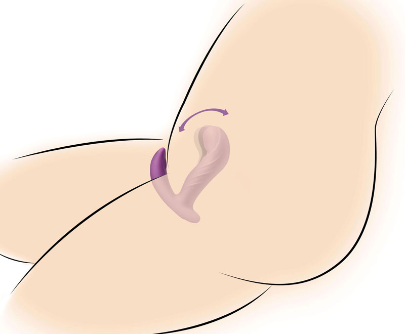 Grab your favorite water based lube and cover the toy and your labia and clitoris. Turn the toy on and pair it with the remote control. Slowly begin to work the toy inside. Once fully inserted, turn on the Come Hither function and enjoy rocking against the G-spot targeting massager! Play with the different vibration settings and feel your senses come alive to dual stimulation from the G-spot massager and the vibrating, textured, clitoral pad! Rock and writhe against the toy using the remote control to switch settings as you desire until you reach your final release!