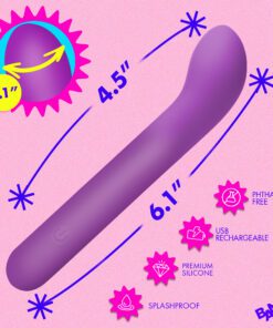 Key Features: Satisfying Vibrations: Enjoy 3 speeds and 7 patterns of powerful vibrations! Curved G-Spot Stimulation: The curved angle and large, round end are perfect for reaching your G-spot! Flexible Silicone: Curve-compatible flexibility that bends as you move. Premium Silicone: The soft-touch finish on this premium-grade, body-safe silicone is silky smooth against sensitive skin. Rechargeable and Splashproof: Recharge via a... Read more