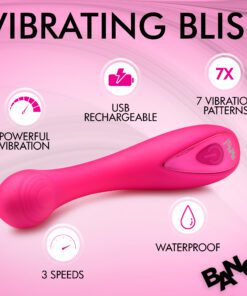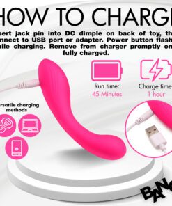 Get the power and pleasure right where you want it with this G-spot vibrator! The wide, round head is slightly ribbed for extra stimulation and shaped to stimulate your G-spot! The shaft itself is extra firm and flexible for a strong but bendy toy that forms to your custom shape! Enjoy 3 speeds and 7 patterns of powerful, buzzing vibration! The silky smooth, premium silicone is phthalate-free and body-safe. Use only with water-based lubricants for best results. Take it in the shower, too! It’s rated IPX^ waterproof so it can handle powerful jets but should not be submerged underwater. Recharge using the USB cable provided. To clean, wash with warm water and mild soap, then rinse it and spray with a toy cleaner before letting it air dry.