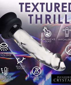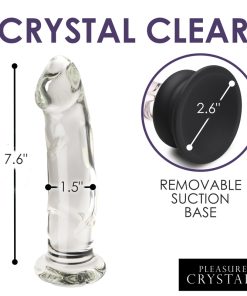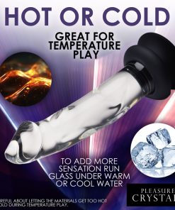 Crystal clear glass brings a level of elegance and satisfaction to your curated toy collection. This borosilicate glass can handle being used for your pleasure and is made out of the same material that many household cooking glass is made out of. It can handle changes in temperature so you can explore temperature play. It has realistic details like a round head, corona, veiny shaft and wrinkled balls. However, you can see right through it due to its transparent nature! Its wide base makes it compatible to use with a strapon harness! Glass is compatible with all lubricant types and is easy to clean, too! Simply wash it with warm water and mild soap, then rinse it and let it air dry. For more thorough cleaning, boil it in water or put it in your dishwasher. Spray it with a toy cleaner afterwards and let it dry. Avoid any abrasive towels or surfaces and don’t drop it from a significant height. Avoid dropping it on concrete or hard surfaces.