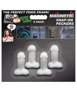 Imagine hiding these pale, white dongs in secret spots only to have them discovered as glowing, disembodied peckers that float in the night! Enjoy 4 mini, glowing, magnetic dildos, perfect for any playful prank or occasion! Each one can stand upright, making them a versatile addition to your adult novelty collection. Looking for a laugh? Magnetic Snap-On Peckers are here to add some cheeky fun to your space. These little peckers attach to most metal surfaces, so stick them wherever you like, and they’ll stay put. Whether it’s an office prank, a bachelor or bachelorette party, or just a giggle-worthy present, these items promise a good time. Crafted from premium silicone, they’re durable and body-safe.