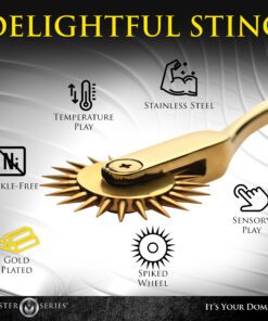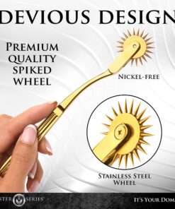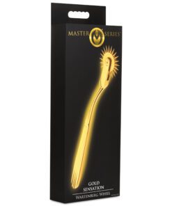 • Sensation Wheel: This golden Wartenberg wheel with a row of pins on it rolls over the skin and causes goosebumps and sensual stimulation.