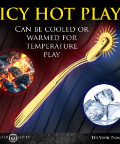 Wake up your partner’s senses with this Wartenberg wheel! The shining, golden, wheel of needles are blunt enough to use on the skin but prickly enough to heighten sensation and give them goosebumps across their flesh! Use it during sensation-play and in kinky scenes to add another layer of desire-invoking teasing! The wheel was originally used in the medical industry to test nerve reflexes; now, you can watch your partner’s body light up with sensation as they melt in your hands while you send tingles down their spine, their legs, their arms, their chest… Use it gently. If you want to switch it up and add some pain, drag the wheel sideways across the skin to scrape them or smack them with it. Never use it near the eyes and be careful around the more sensitive glands between the thighs. To clean after use, wash with soap and water, spray with a toy cleaner, or boil in hot water.