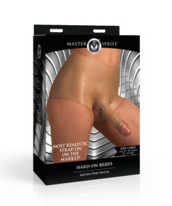These silicone panty-shorts give you a sexy opportunity to live out your wild fantasies, your hottest kinks, or to simply enjoy gender-affirming panties! The stretchy, phthalate-free silicone panties have a large, poseable dildo with balls at the front so you can angle it to the right spot for your partner. The look and feel is realistic so you can really play into the fantasy and make it a reality! The back of the panties have an anal opening so you can enjoy stimulation without removing the panties. Be sure to measure your hips and waist to get a perfect size and fit.