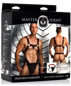 Show off your body and enjoy the look and feel of this strong, faux leather harness! Put the harness over your shoulders and tighten or loosen it so that the cockring can comfortably slip over your shaft and testicles. To put the cockring on, slip one testicle in at a time, and then pull your flaccid shaft through the ring. After that is secured, you can tighten the straps to gently pull up or lift your shaft. If anyone tugs against your harness, they will also be gently tugging at your rod as well! Cover up your goods until the big reveal later by wearing the roomy jock strap around your waist and hips. Wear it at your favorite kink club, adult party, or leather festival!