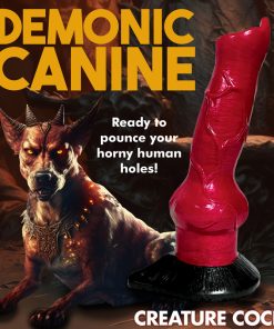 The Hell-Hound is coming for you, and you can hear their snarling, wet growls and aching moans. Their teeth are at your throat as they pin you down to breed you, the long, red rocket dripping wet and penetrating your holes. Feel them push you into their long, thick phallus and stretch you, pulling you down to the hilt. See how deep you can get as they knot inside you! Whether you play the Hell-Hound and deliver each fierce stroke yourself, or you ride the dildo hands-free using the suction cup base, enjoy the fantasy delivered with this realistic, Hell-Hound Canine penis!