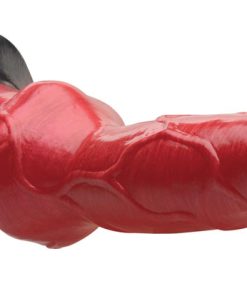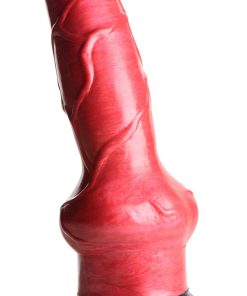 Pounce into playtime with this Hell-Hound Canine penis! The large, red dildo has bulbous testicle glands in a knot above the base, thick veins along the shaft, a concave head with a pointed tip and a sturdy black base. Enjoy hands-free by using the strong, suction-cup base against a wall or flat surface or pair it with a strap-on harness for pegging play! Use only with water-based lubricant. Made of premium silicone, it is body-safe and phthalate-free.