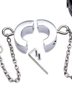 Hells Tether combines two devious ways to play with your subs sack! The weighty ball stretcher adds a substantial weight to the coinpurse of your lover and can be turned into a Humbler with the included ankle cuffs – use the included allen wrench to secure this heavy ring to your partners ball sack, and attach the included ankle cuffs to force them on their knees where they belong!