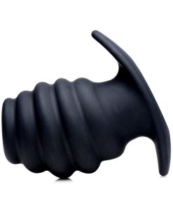 Ribbed for your anal pleasure, this hollow butt plug is available in 3 sizes so that you get the fit that is just right! The design features bold ridges that are curved for comfort while they massage your hole. Meanwhile, the tunnel in the core allows you to insert an anal-safe vibrator, a liquid of your choosing, and more! You can even give your partner a peek inside. Curved to hit the spot, this plug is great for the prostate, but will feel delightful in a female body as well. The ergonomic base allows it to sit comfortably between your cheeks for hours of wear. This unique plug is made of quality silicone, which makes it body-safe. The non-porous and phthalate-free material is not compatible with silicone lubricants, but is easy to sanitize with mild soap or toy cleaner.