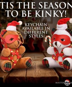 This little bear is the definition of ‘Naughty meets Nice’! Meet your new festive travel buddy, the Plush Little Keychain Bear! This tiny, plush bear is perfect for adding a touch of holiday spirit to your belongings with its adorable green and red flannel ears and feet, topped with a jaunty red Santa hat. What sets this bear apart is its daring kink accessories—mask, harness, and a wicked-looking candy cane —that give it a fun and naughty twist. Attach it to your keys, bag, or purse to carry a piece of playful festivity wherever you go. A hilarious gag gift for any holiday occasion, it’s perfect for anyone looking to spread laughter and cheer!