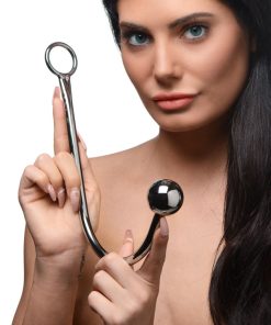 Combine the visual and sexual pleasure of bondage and anal play with this stainless steel anal hook from the Master Series. Hooked features a stainless steel end ball that is inserted into the anus and a open ring at the other end which can be hook up to ropes and other bondage equipment, ensuring a strong hold on its wearer. The ball provides stimulation, and allows you to pull the hook upwards without impaling your partner. For even more sensation, Hooked can be used with the Master Series Cannonball Intruders Orb. Just unscrew the original ball and attach the larger, heavier Cannonball for a whole new range of stimulation and exploration…