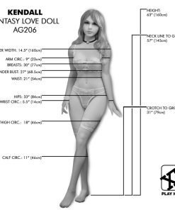 Measurements: 63 inches tall, with a 30 inch chest, 20 inch waist, and 32 inch hips. Her vaginal and anal depths are 7.5 inches and her oral depth is 6 inches. Her shoe size is 4.5