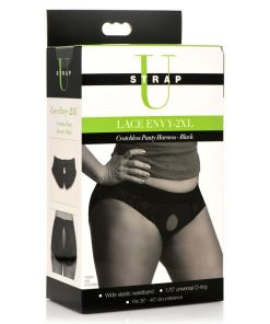 Slip these sexy panties on and then grab your chosen pegging dildo. Slip the dildo under the waistband and push it through the hole in the front. The O-ring will hold it in place and keep it from slipping it. Depending on the weight, it may need some manual support or it will pull the panties down. Grab some lube and your aroused partner and enjoy!