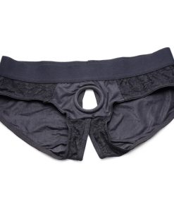 This lacey harness is crafted for functionality and comfort. The crotchless design keeps you ready for action when the mood to switch positions arises, allowing you and your lover to play with absolute freedom. The lingerie styling and universal O-ring let you get your strap-on in style and comfort!