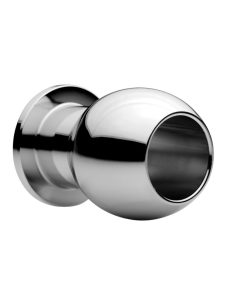 Look deep inside with this hollow anal plug made of metal! Use it with a partner to give them a glimpse into you most intimate regions, or see what can fit into the center tunnel. The nickel-free aluminum alloy facilitates a smooth insertion as this anal dilator spreads you open. Because it is non-porous, it can be used with any type of lubricant and sanitizes thoroughly with warm water and mild soap or toy cleaner.