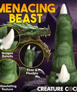 • Fantasy Dildo: A large, green, dragon finger reaches out with its sharp, white claws to penetrate you! Enjoy this fantasy dong with unique ribbed and scaled textures!