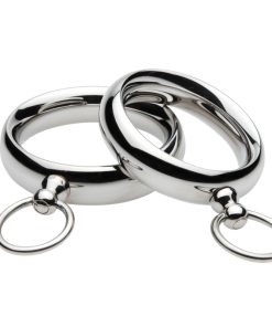 This versatile cock ring is a heavyweight way to enjoy erection enhancement while adding style and functionality! The O-ring at the front will set the mood as a statement piece, or act as a versatile anchor point for ropes, chains, clamps, or other bondage accessories. Get creative! Chain them to the wall or force them to bend over in supplication to you. The smooth, weighty steel is temperature sensitive and can be heated up or cooled down as you desire.