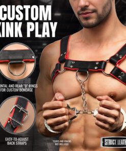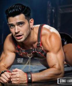 Key Features: Kinky Leather Harness: Enjoy the feel of real, genuine leather against your skin! This durable harness is shaped in the English Bull Dog style. Perfect for pup-play or to dress in a Dominant style. Adjustable Straps: Use the buckles and straps to adjust for the perfect fit, either on bare skin or over a shirt or blouse. Built-in... Read more