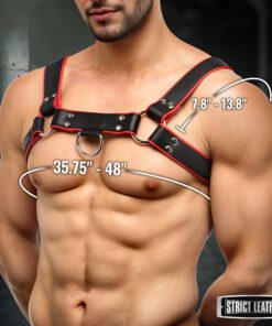 • Transform your look with this expertly crafted leather harness, a must-have for fetish enthusiasts. Made from genuine leather, this English Bull Dog-style harness offers both functionality and a sleek aesthetic. Adjustable straps provide a tailored fit, whether worn solo or styled with other pieces. Complete with two secure D-rings for added versatility, it’s designed to enhance your experience. All metal accents are nickel-free, ensuring a safe and comfortable fit every time.