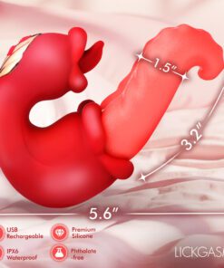 Unleash new levels of intimate pleasure with our dual-action tongue-themed vibrator. This innovative toy combines clit and G-spot stimulation, ensuring every moment is deeply satisfying. The textured tongue delivers thrilling sensations with 3 speeds and 7 pulsating patterns of licking vibrations. Meanwhile, enjoy the intense rotation and vibration from the penetrating tongue, crafted to hit your sweet spots with precision. Made from ultra-soft, premium silicone, it feels gentle yet firm where you need it most. Waterproof with an IPX6 rating, this toy is perfect for steamy shower sessions, and the USB-rechargeable design makes it simple to power up for endless play.