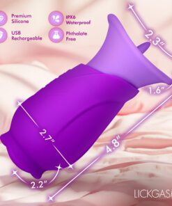 The Licking Violet Sucking + Licking Vibrator combines suction, vibration, and tongue-style stimulation in one compact design. Made from premium, phthalate-free silicone, the soft cup surrounds the clitoral area while an internal tongue delivers 10 motion and vibration modes. Five suction settings allow for adjustable pressure, offering multiple stimulation combinations. Fully waterproof and USB rechargeable, this design supports convenient use and cleaning.