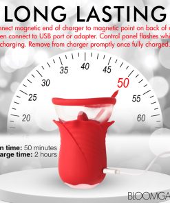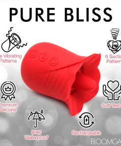 This lovely flower is here to buzz your garden and drink your nectar! It combines suction with vibration for a perfectly paired sensory delight! The flower tongue will tickle your pearl with 3 speeds and 7 patterns of vibration. Place the removable suction cup onto the top of the flower to enjoy 6 different suction modes that tease and gently pull at you in tantalizing ways! Made out of silky smooth, premium silicone the flower is perfectly suited to your needs. You can even take it in the shower! It is rated IPX6 waterproof so it can handle powerful jet streams, but do not submerge it underwater. Use only with water-based lubricants for best results. To clean, rinse in warm water and mild soap then spray with a toy cleaner. Store in a cool, dark place. Recharge using the USB cable provided.