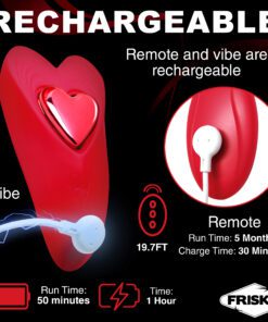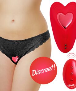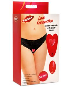 Indulge in secret fantasies with your partner! This Love Connection silicone panty vibe is the perfect, discreet toy for the both of you to enjoy. The vibe slips perfectly into place against your vulva and is held into place with a pretty, magnetic red heart. The ergonomic design of the vibe makes it comfortable to wear as it forms to all your curves and crevices perfectly. Wear it out with your partner and have some fun! The remote works from up to 19.7 feet away! Use the remote to buzz your partner and keep them wet and aroused! There are 3 speeds and 7 patterns to choose from, so choose your moment wisely! The toy is made out of premium quality silicone so it is body-safe, phthalate free and silky smooth. Use only with water-based lubricant. Both the remote and vibrator are USB rechargeable. To wash, use warm water and mild soap, then spray with a toy cleaner and pat dry.
