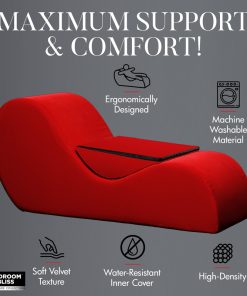 Reimagine sex and play with this curved, chaise lounge couch! The velvety cover is made of polyester and gently caresses your skin as you ride on top of it. Recline back and let your partner part your legs and give you some attention with their mouth, lips, tongue and hands. Turn over and lean your arms and chest against the upper part of the couch while you kneel against the dip in the couch and do it Doggy Style! You can ride them without having to practice a bunch of yoga stretches when you’re supported up off the ground and able to straddle them! Enhance every position and get to your favorite angle that hits that sweet spot with this sexy, plush couch!
