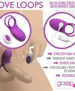 This Love Loop is a perfect toy for couples! Wear the cock ring over your shaft and balls with the vibrator facing up and away from your belly and then your partner can ride your rod while they grind on the toy! Enjoy 3 speeds and 7 patterns of powerful vibrations that you both can feel! Made out of silky smooth, premium silicone, it’s also phthalate-free and body-safe to use with any water-based lubricant. Enhance your play time and use the rechargeable remote as you ride your partner! Get penetration and external stimulation all at once! As a bonus, the cock rings help to reduce premature ejaculation and keep you a little more hard, too! Bring it in the shower for some wet and hot play! This toy is rated IPX6 waterproof so it can handle powerful water jets. After use, wash with warm water and mild soap, then spray with a toy cleaner and wipe dry. Recharge both the remote and the vibe with the USB cable provided. Only use water-based lubricants.