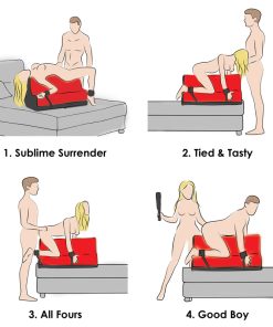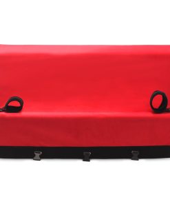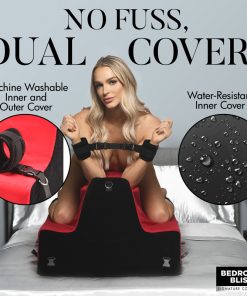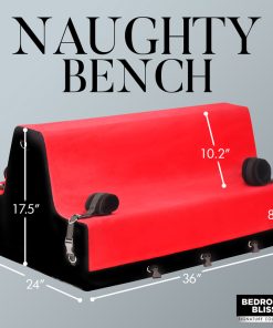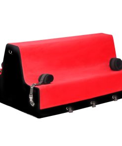 Enjoy longer scenes and more comfortable kink with this Love Bench! Never before has there been such an easy to use and ergonomic bondage bench. Designed so your torso and lower limbs are fully supported but cushioned at the same time. Don’t sacrifice your time and desires by playing with furniture that doesn’t allow for superior comfort! You can choose what type of pain you might enjoy without succumbing to numb hands and aching knees with high-density foam that is firm enough to lift you up but not so soft that you sink into the pillow. This vibrant red and deep black bench is easy to move around and can be placed on the floor or a bed to play on. With 12 different attachment points you still enjoy playing while restrained. The bench includes 2 wrist cuffs, 2 ankle cuffs, 3 connectors with D-rings and 2 restraint connectors. Due to the bench being softer than a hard wood or metal bench, you can also explore more positions that your body would normally allow you to! The velvety soft outer cover feels luxurious against your bare skin and the water-resistant inner cover protects the foam from water, spills and moisture so you can enjoy this item for years to come. Both covers are machine washable so you can easily care for your new favorite bondage bench!